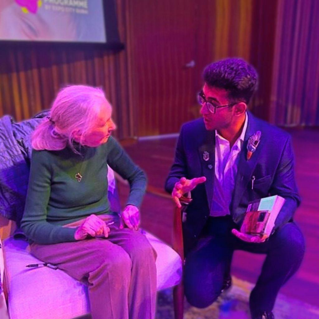 In February, just before I left to study at Monash University in Australia, I met her in person at the Roots & Shoots UAE Awards at Expo Terra, Dubai. That meeting, brief, intimate, and impossibly charged, remains the compass I come back to when I feel exhausted, defeated, losing hope, or afraid for the future of the natural world. When I had the honour of meeting her, I wasn’t just standing before a pioneering scientist, but before a soul who radiated kindness, wisdom, and a love for life that could move mountains. I still remember the way she listened, truly listened, as if every word I said mattered. Her gentle smile, her calm presence, and her unwavering belief in the goodness of humanity touched me in a way I will never forget.