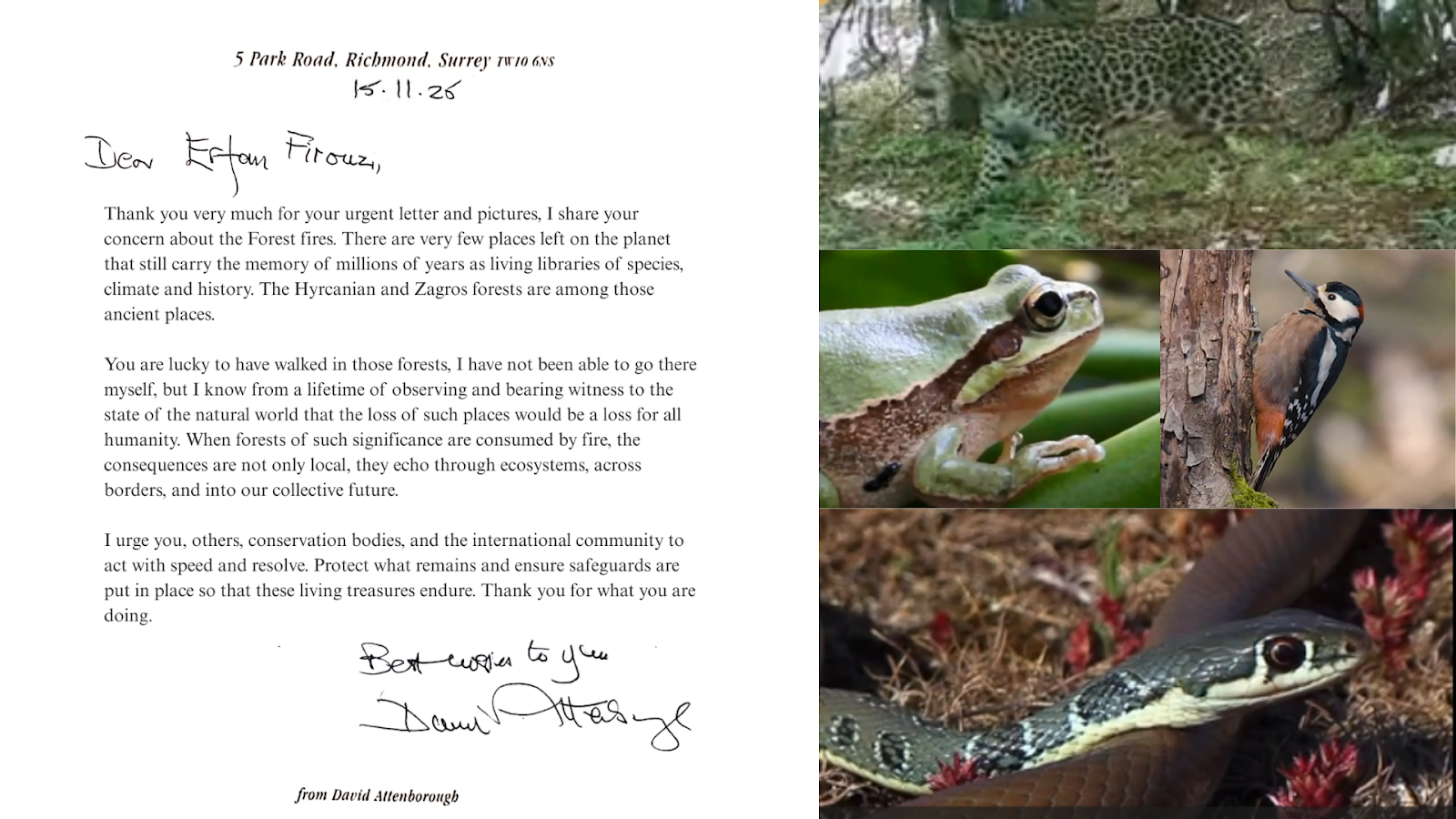 And I wrote to Sir David Attenborough attaching a few photos you have seen this far, and this was his reply:
