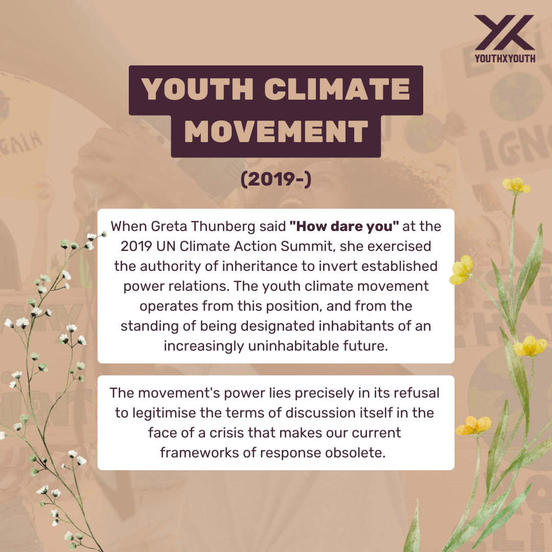 The legitimacy with which youth movements speak makes power undeniably uncomfortable. The way they often articulate themselves is grounded in survival rather than what we are used to seeing, which is self-interest. For example, there is no adequate rebuttal when a young person says "you are destroying my future". Young people didn't create these systems, but they will live or die inside them. When youth speak, they speak as inheritors. And inheritance gives you standing. It gives you the right to inventory what you've been handed and to demand what was promised but never delivered.